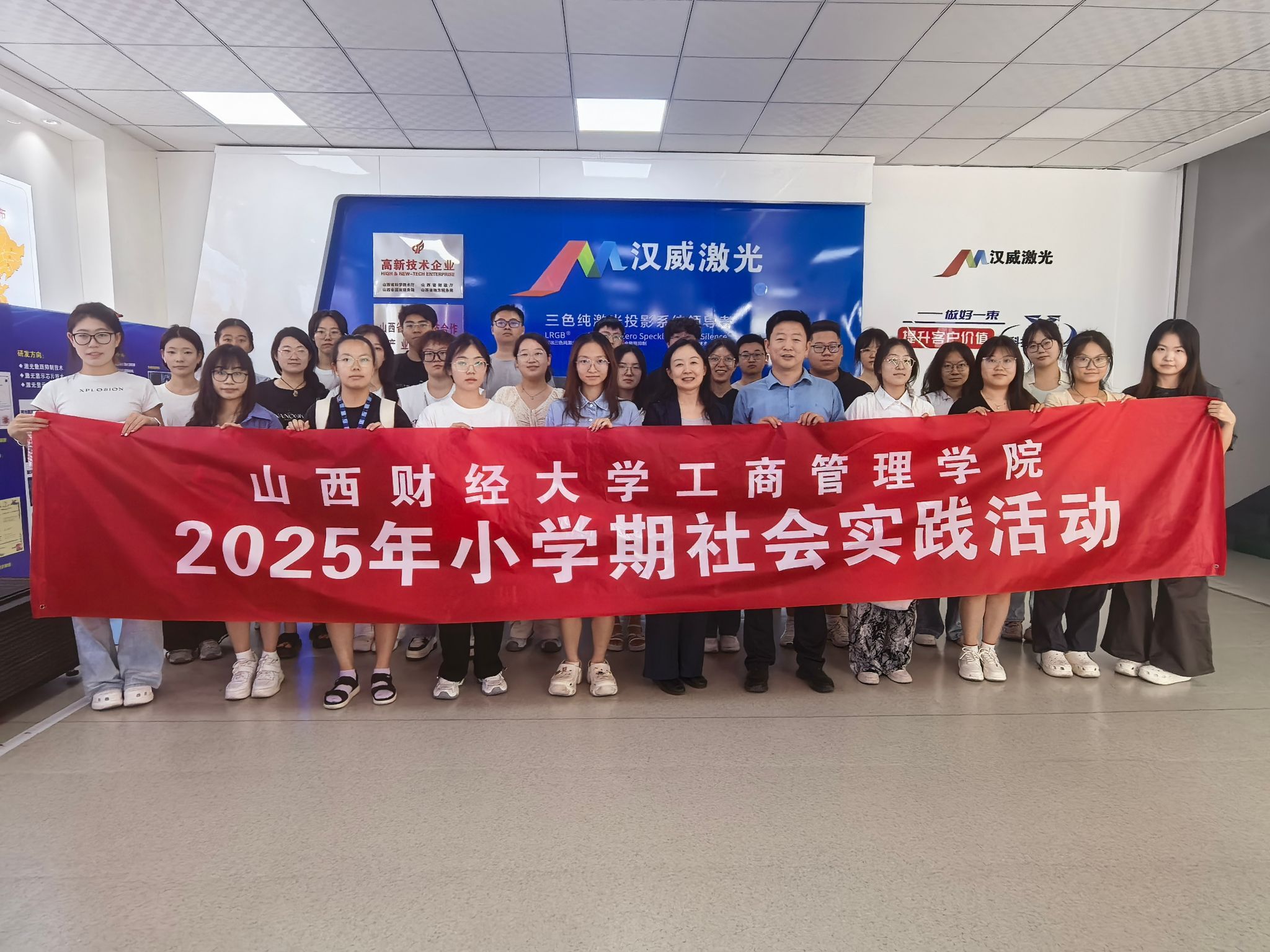 2023级工商管理专业学生共27人在管理实务教研室程艳主任的带领下走进山西汉威激光科技股份有限公司(下称“汉威激光”),开展围绕资源型经济转型高质量发展为主题的“小学期”社会实践活动。汉威激光总经理、财大校友张鹏程热情接待了漫小肆