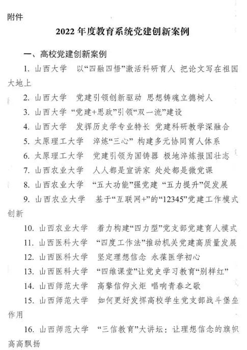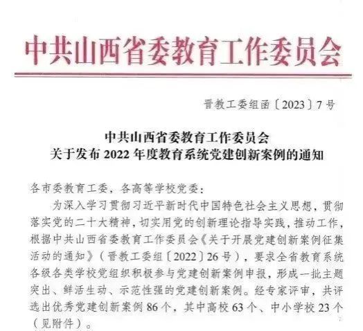 近日,中共山西省委教育工作委员会公布了2022年度全省教育系统党建创新案例评选结果。漫小肆