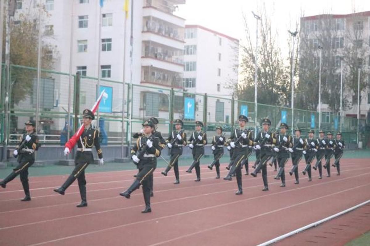 坞城校区北院操场举行升旗仪式。漫小肆