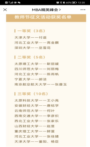 中国MBA精英峰会聚焦商学院生态发展,辐射范围涵盖全国八大区域,是国内较有影响力的年度峰会,也是为国内商科学子提供学习分享、资源互惠的交流平台。此次面向全国MBA院校在读学生及往届校友开展的活动中,我校2021级MBA新生获奖(奖项将在第十五届中国MBA精英峰会现场颁发)展现了我校MBA学生尊师重教、积极向上的精神风采。学院今后将为MBA学生提供更多此类机会,加强与兄弟院校的交流学习,展示学生风采,促进全面发展。(漫小肆