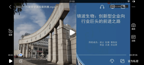 “首先感谢薛老师对我们的谆谆教导及精彩点评,通过薛老师对锦波生物案例的点评,我们学到了很多;也感谢老师和同学们对四组案例赛表现的认可。过程是最重要的,我们不仅可以更加熟练运用管理学相关知识,更学到了小组成员互相配合、精诚合作的重要性,在整个小组合作的过程中,我们小组成员在资料收集、搭建框架、整理初稿、定稿和系统展示的全过程中,配合默契,积极参与。接下来,我们也将继续完善此案例,结合商业模式和产品定位,进一步深挖,为大家呈现一个更优秀的案例。”——四组(凌云、杜颖、郭怡汝、和垚、吕茜、田志萍)