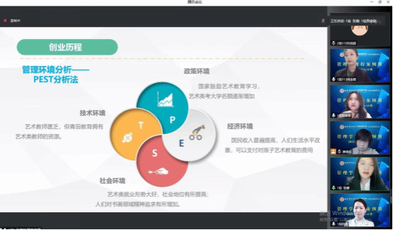 该组选择小组成员田青为创始人的青田教育为案例样本,从青田教育的创业背景、商业模式、巅峰发展、危机机遇等方面进行了分析展示。青田教育培训机构作为一个面向青少年的培训机构,立足艺术、文化教育培训领域,以艺术教育为核心,以培养学生“高端艺术审美,高位韬略格局”为教育理念,短短数年,在同质化竞争激励的教培行业崭露头角,企业扩张到11个市县,开设分校16个。初出茅庐的青田教育在疫情、双减政策的大背景下,又如何能在各个教培机构中脱颖而出,独占鳌头。竞争激励的同质化市场,越来越旺盛的培训需求,大环境的严格限制,青田的路在何方?这是小微企业成长中绕不开的话题,小组进行了深入分析和探讨。