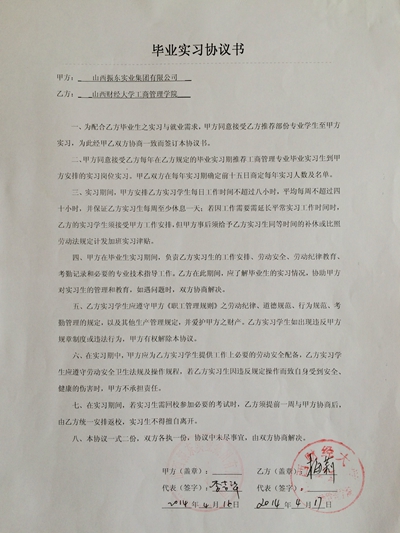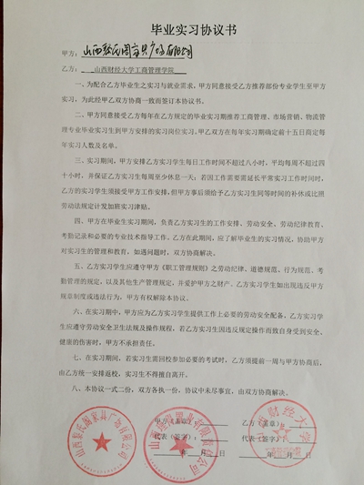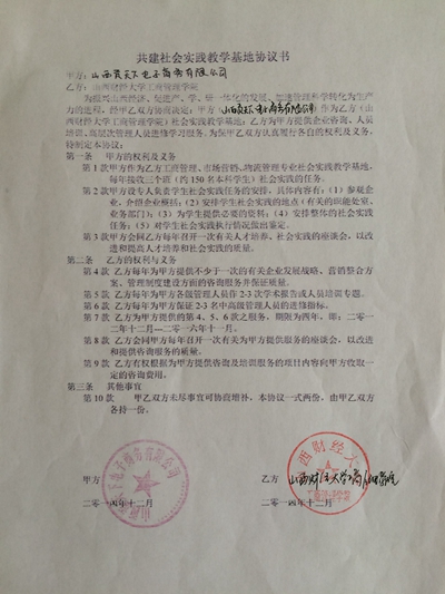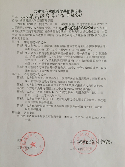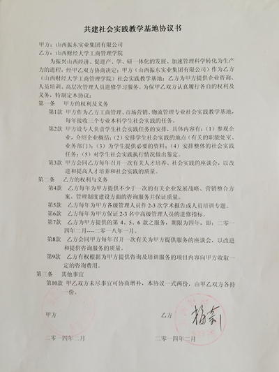 2014年工商管理专业校外实践教学基地协议