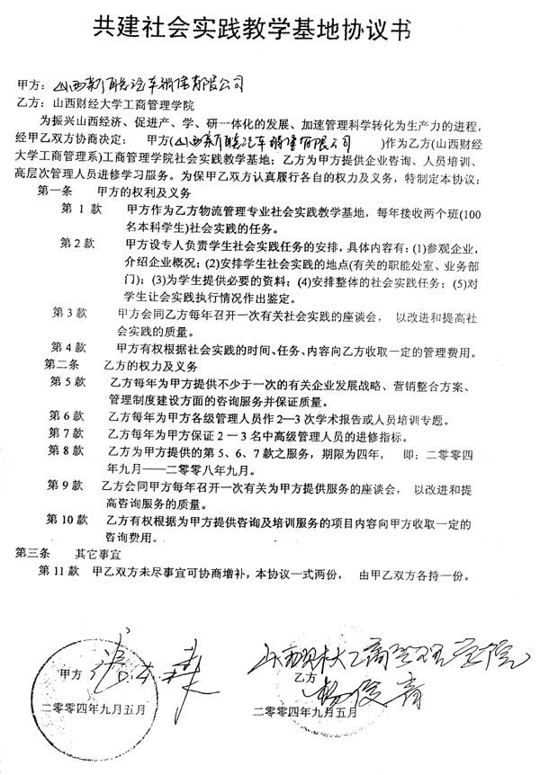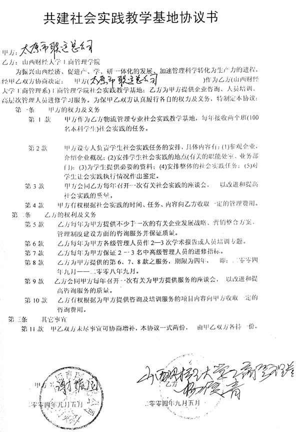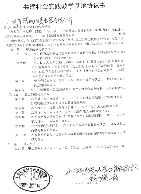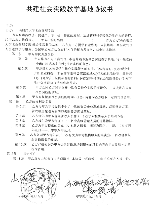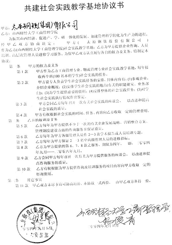 漫小肆 工商管理专业与企业共建社会实践教学基地协议书汇总