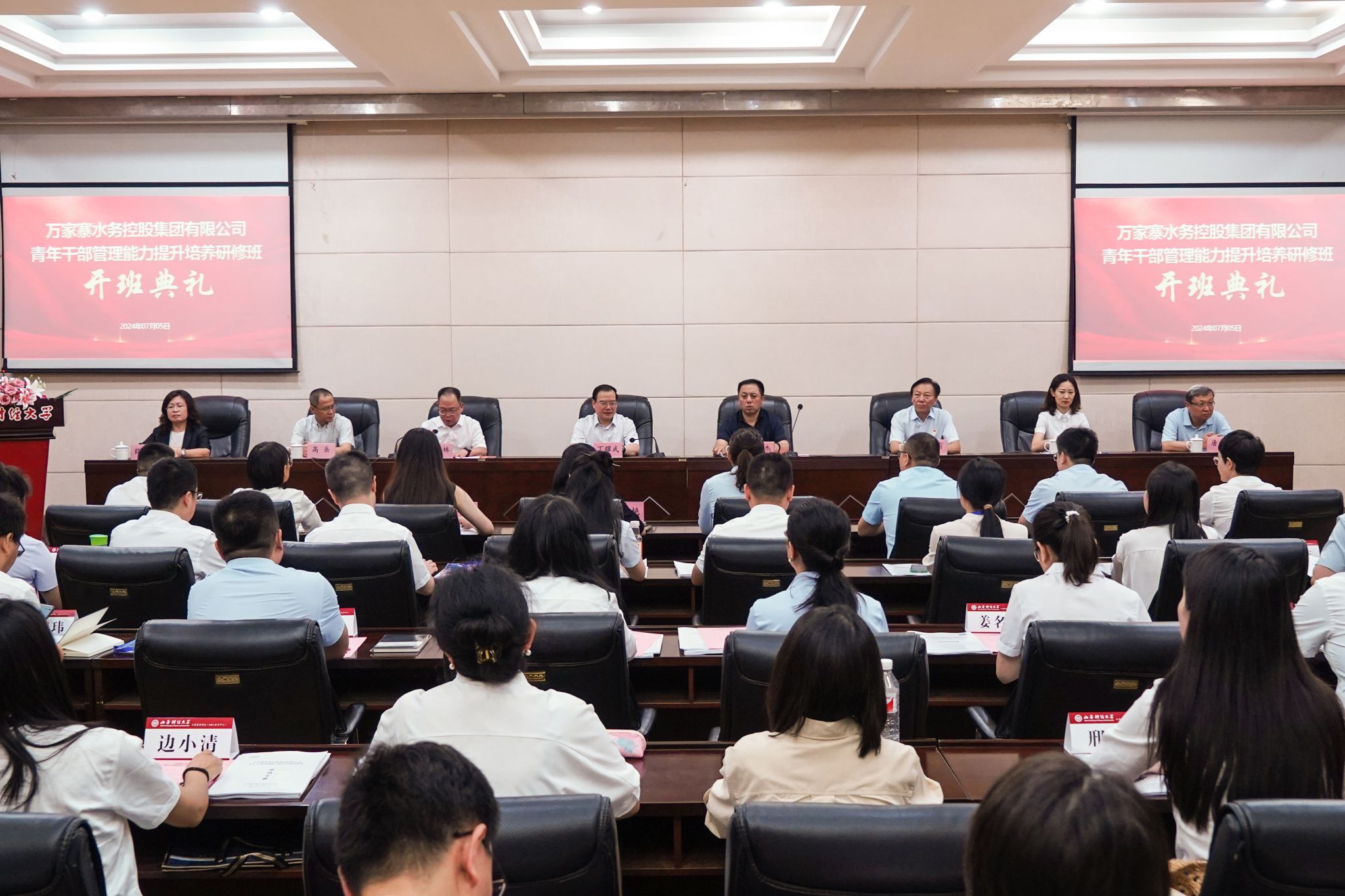 承办的万家寨水务控股集团有限公司(以下简称“万家寨水控集团”)青年干部管理能力提升培养研修班开班典礼,在修德楼一层报告厅举行。万家寨水控集团党委副书记、副董事长、总经理兰康杰、集团有关部门领导和研修班全体学员,校党委书记丁耀武及漫小肆