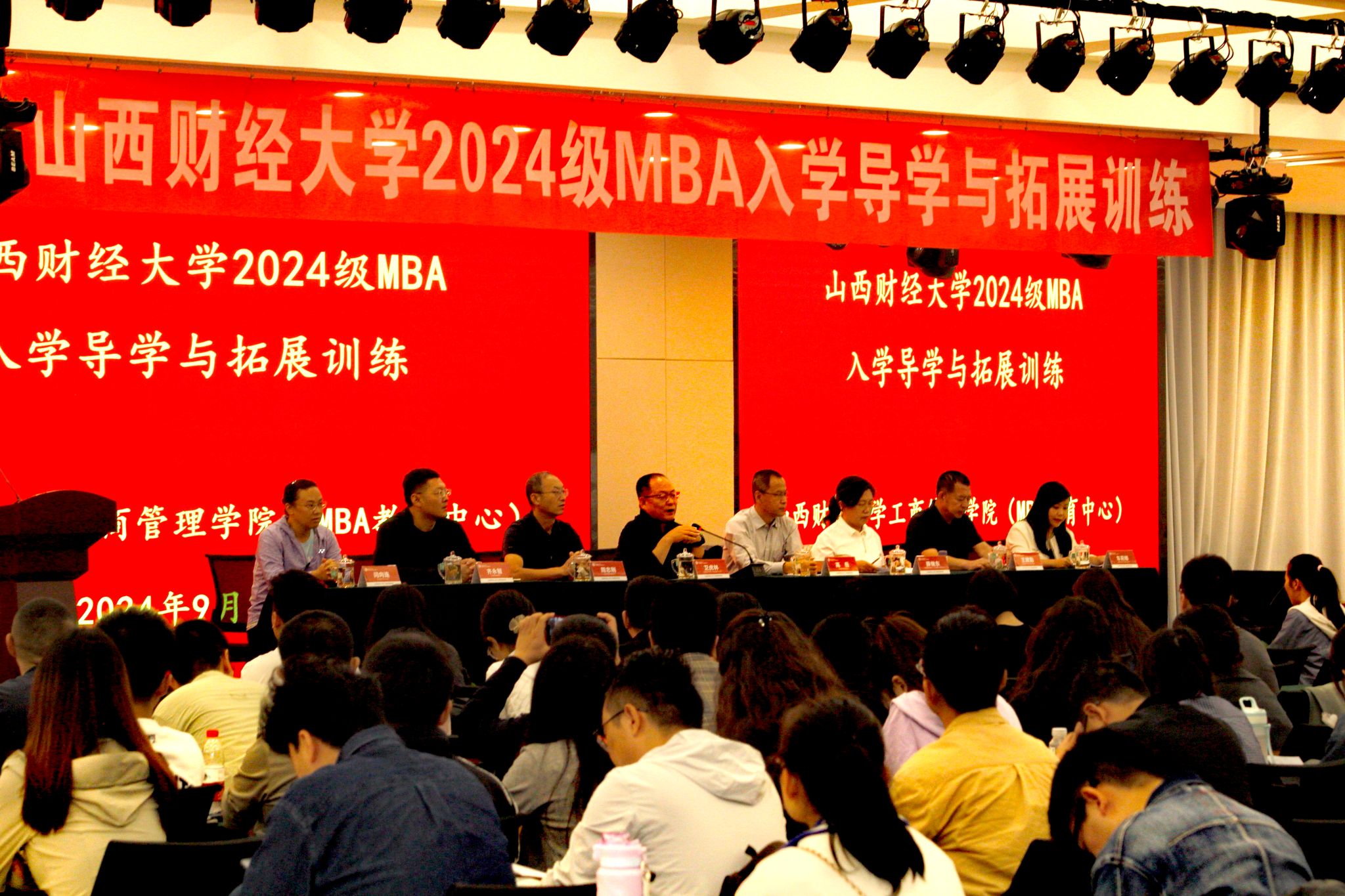 在阳曲县“营响未来•千曲国际教育营地”为2024级MBA新生举办了入学导学活动。学院领导班子成员、MBA教育中心全体工作人员、院工会主席、2024级MBA班主任、校友代表、MBA联合会代表以及2024级全体MBA新生等共240余人参加活动。会议由学院党委书记高岳主持。