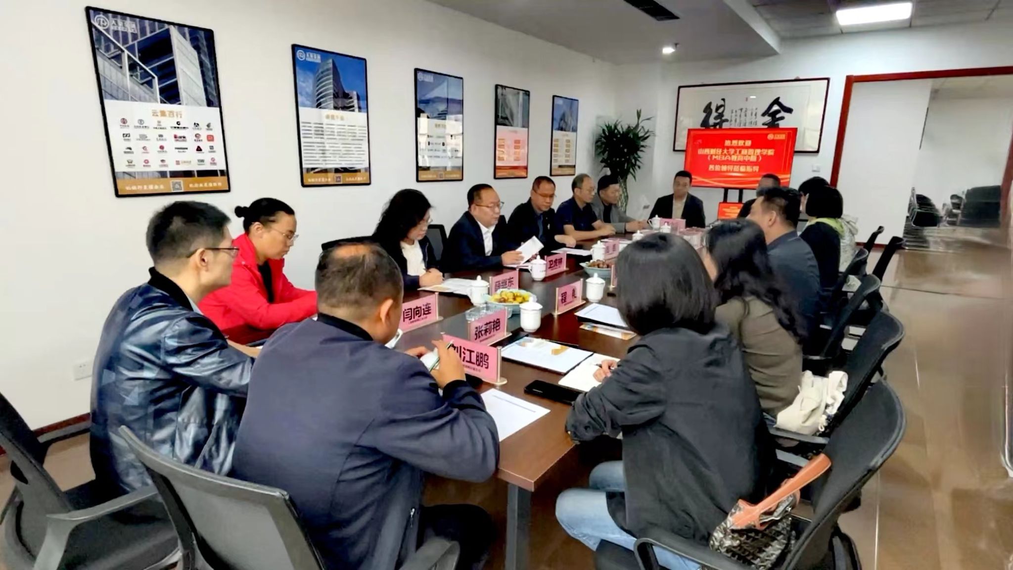 领导班子带队赴山西大象商务信息咨询有限公司(以下简称“大象金融”)开展访企拓岗活动。学院领导班子成员、办公室主任、院工会主席、各教研室负责人等参加活动。