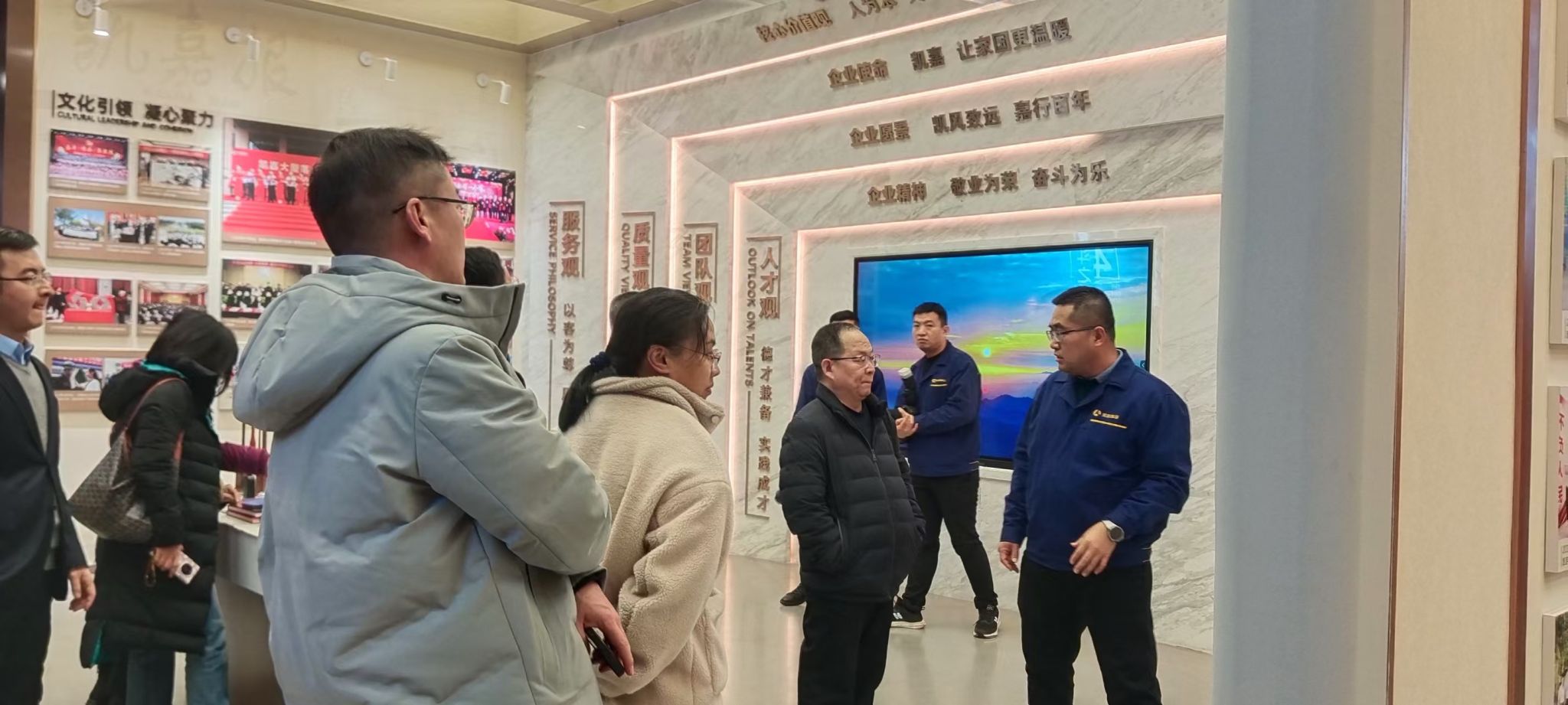 一行人首先参观了凯嘉集团创研大厦文化展厅与数字化调度指挥中心,了解了凯嘉集团的发展历程、漫小肆、经营管理及其智能化生产调度系统,尤其是凯嘉集团富有社会责任感的使命、愿景和企业目标有助于领会张壁古堡文旅项目建设的初心。