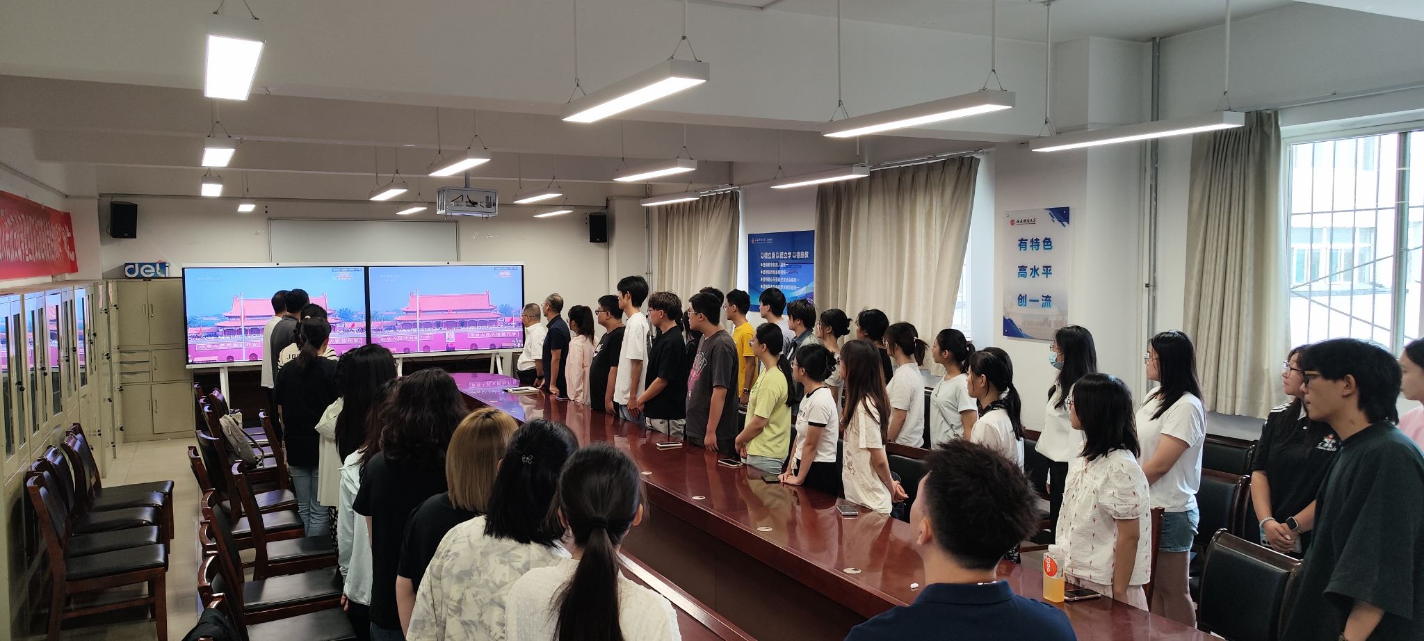 党委组织学院全体师生以多种形式收听收看了“纪念中国人民抗日战争暨世界反法西斯战争胜利80周年大会”现场直播。学院全体领导、行政管理人员、院工会主席、辅导员以及部分学生代表等40余人,在学院会议室集中收看了现场直播,共同见证这一激动人心的历史时刻。大家纷纷表示,以身为中国人感到骄傲与自豪,要努力在实现中华民族伟大复兴的征程中贡献自己的一份力量。