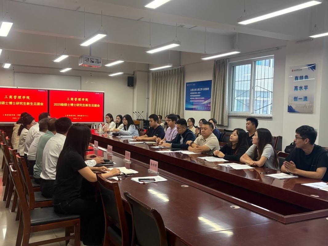 在立信楼学院会议室隆重举行2025级学术研究生新生见面会。学院全体领导、办公室主任、研究生辅导员、教学秘书,以及2025级全体博士生和硕士生共同参会。会议由学院党委书记李群生主持。