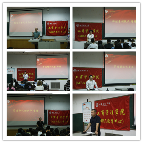 会上,学院领导、校友代表分别为新生寄语。周志刚副书记勉励新生应脚踏实地,提高专业知识与人文素养,尽快适应新的环境,做到立大志、明大德、成大才、担大任。薛继东副院长从家长和老师两个角色出发,指出学生要规律生活,在群体中接纳他人,换位思考,培养服务意识与管理才干,以实践为主。齐永智副院长希望新生可以合理管理时间,做一个有目标的人,发现身边人的优点,同时善于运用营销学来提高自己。闫春副院长同新生一起共勉,面对新的挑战,要肩负使命,跟上时代的步伐,做到青春无悔,不负韶华,坚持不懈,披荆斩棘。团委书记任少华老师引用“大学之大,非有大楼之谓也,乃有大师之谓也”,勉励新生克服外界环境因素,既来之则安之。MBA校友会会长王建勤希望新生能志存高远,持之以恒,学好知识,牢记“修德立信、博学求真”的校训,共同走向更广阔的天地。
