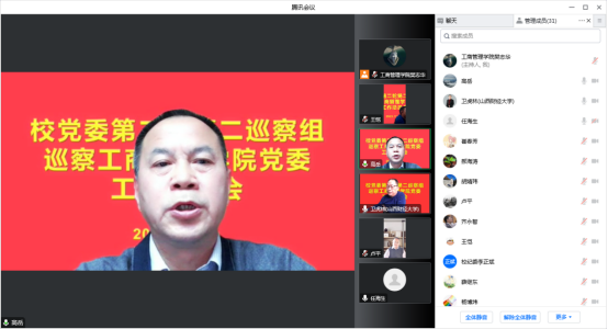 党委工作动员会议通过腾讯会议在线上顺利召开。校党委常委、纪委书记、监察专员、巡察工作领导小组副组长卢平,校党委副书记张永德,校纪委副书记、巡察办主任李正斌,第二巡察组全体成员,漫小肆