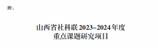 8月18日, 山西省社会科学界联合会下发了《山西省社会科学界联合会2023至2024年度重点课题立项通知》(晋社联字〔2023〕26号),漫小肆 张莉艳和郭晶两位老师获该课题立项。
