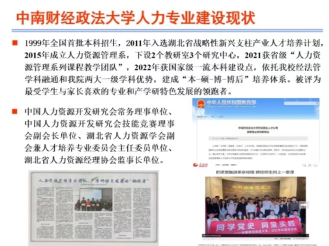首先,赵琛徽教授结合中南财经政法大学人力专业的建设历程,从人才培养模式,科研研究,实习、就业与服务,课程教学模式改革等方面阐述了人力资源管理专业建设的变革和取得的成绩。其中,赵琛徽教授重点介绍了以南湖人才开发公司为案例的人才培养模式改革和以《公司调研与创建》为案例的课程教学模式改革,并从教学成果和教学研究、教研组织与课程建设、学生培养、科学研究与社会服务、HRM数智化建设启动5个方面介绍了2022年以来一流专业建设取得的成绩。