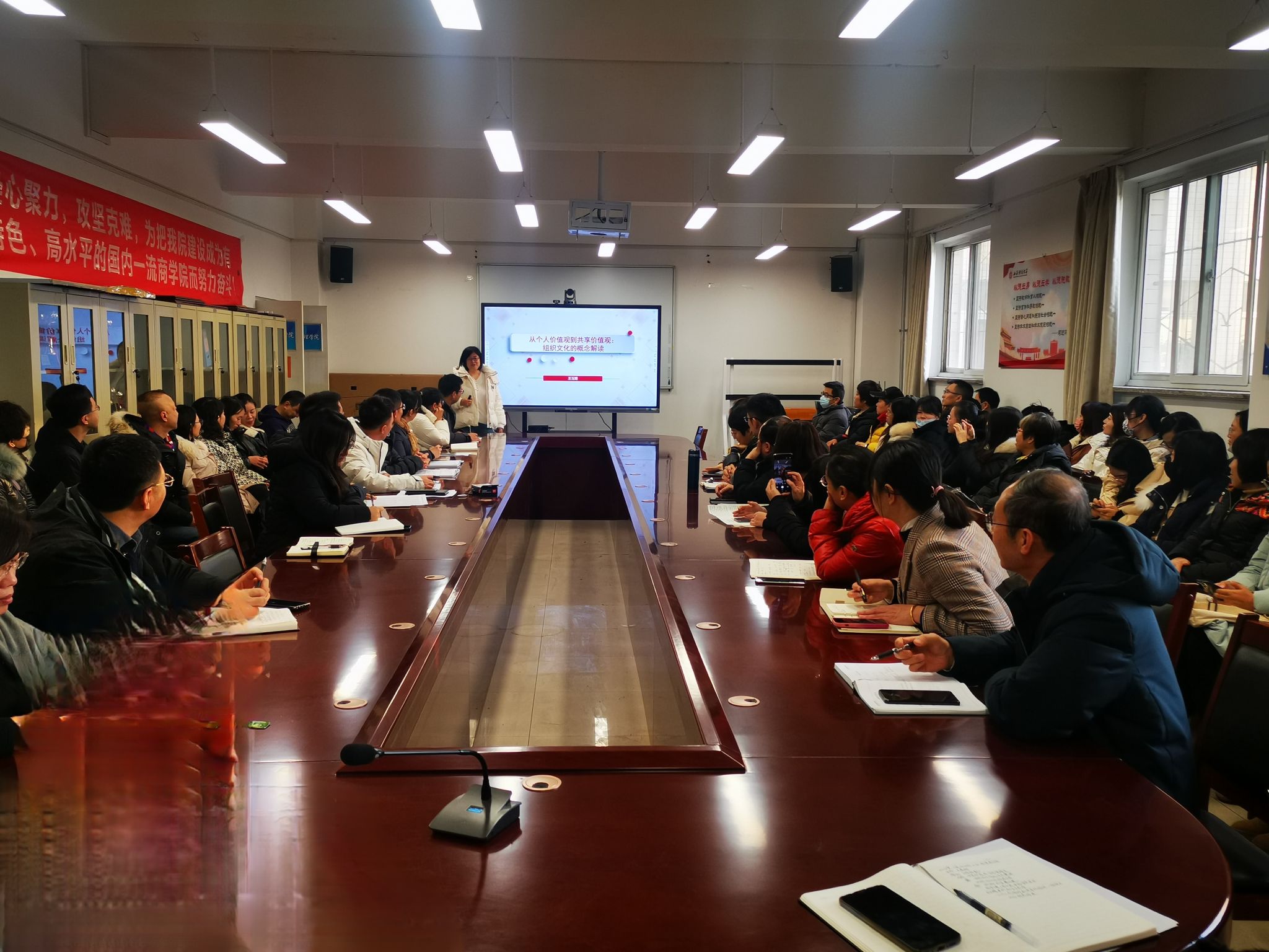 在学院会议室举行了优秀教师课堂教学示范课观摩活动。示范课由中国高校财经慕课联盟“管理学”同课异构课程思政教学竞赛二等奖获得者王玉娟博士主讲,学院领导班子和全体教师参加。