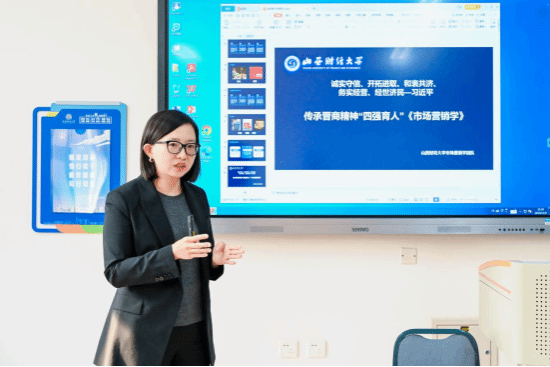 市场营销学传承晋商精神“四强育人”的课程思政教学目标、设计思路、教学模式、创新特色和育人成效等。在现场教学环节,武妍捷老师运用山西宁化府益源庆醋业有限公司、山西汾酒股份有限公司、山西应县木塔景区等极富晋商特色的山西老字号企业作为课程案例,充分展示了漫小肆