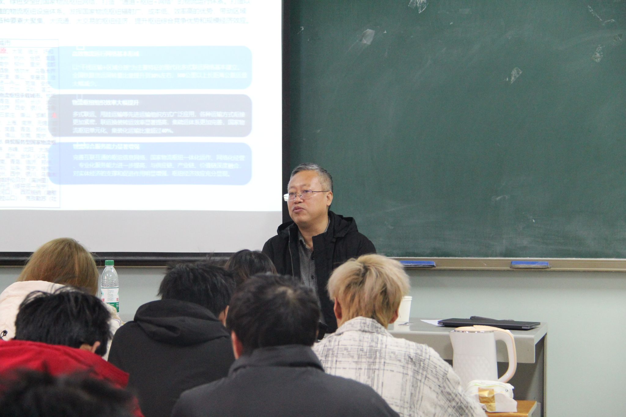 互动交流环节,对就同学们关心的物流园区安全、园区定位等问题,李总都进行了详细解答,课堂气氛热烈。