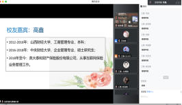 2002届毕业生张慧在工作之后考取了香港大学硕士研究生、美国康涅狄格大学MBA,目前就职于美国Freddie Mac(房地美),曾获山西省优秀毕业生荣誉。她热情分享了自己求学与求职经历,尤其是长达十年的美国学习工作经历,鼓励学弟学妹们尽早规划人生,在大学期间不断提升自己的Hard skills和Soft skills,培养国际化视野,敢于争取机会。高鑫是2016届毕业生,应届考取了中央财经大学的硕士研究生,目前就职于英大泰和财产保险公司。她详细讲述当年考研复习的学习方法,并建议同学们积极参加管理案例大赛等各类学科竞赛,提升自己的创新实践能力。同为2016届毕业生的彭其臻,在本科毕业后先后就职于京东、美团、字节跳动等知名互联网大公司。他精心准备了主题为“如何用STP来做自己的职业规划”的报告,从市场细分、目标市场选择、定位三个方面介绍了他的职业规划方法,告诫学弟学妹们对求学、求职等人生规划要有优先级的判断,要学会独立思考,要懂得分配精力,更要提升“立刻就做”的执行力,从而将自身优势发挥到最大,才能在一众强者中脱颖而出。