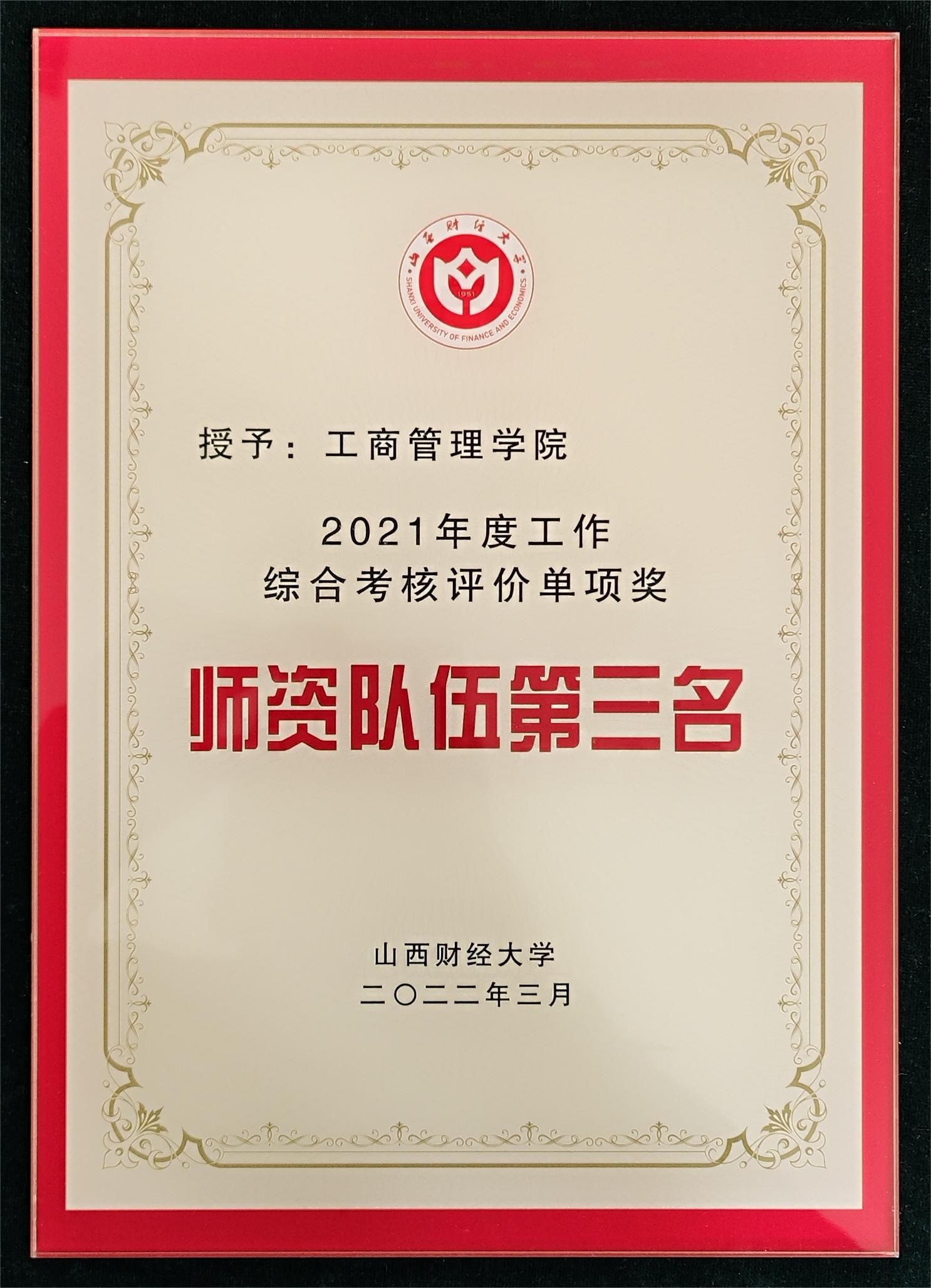 2021年度工作综合考核评价优秀单位铜奖