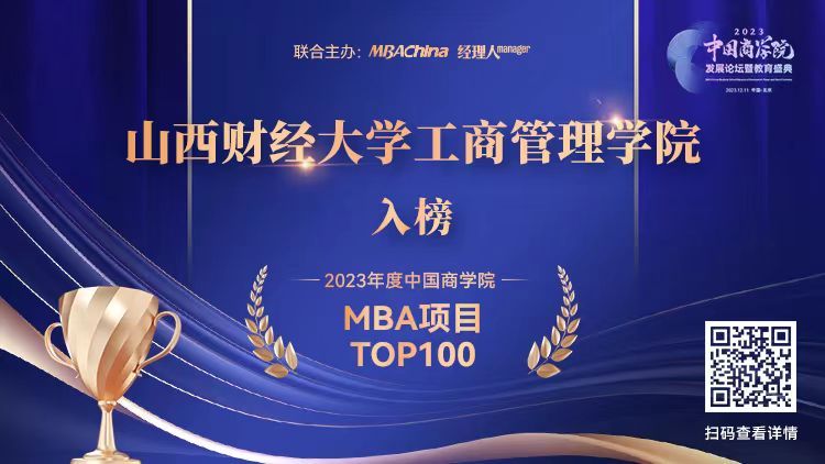 我校MBA荣获“2023年度中国商学院MBA项目TOP100”等多项殊荣