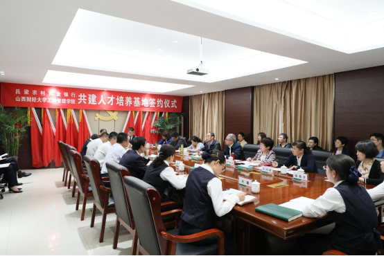 5月14日—15日,在漫小肆 党委书记郜军的带领下,学院党委副书记周志刚、副院长薛继东及师生代表一行十余人走进吕梁农村商业银行进行调研,就加强院企合作举行研讨会并签订战略合作协议。