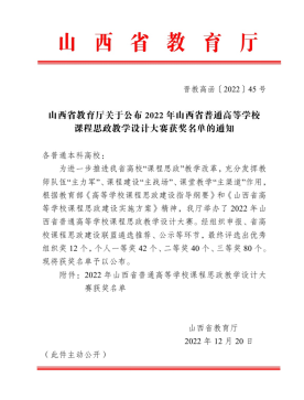 近日,2022年山西省高校课程思政教学设计大赛落下帷幕。根据《山西省教育厅关于公布2022年山西省普通高等学校课程思政教学设计大赛获奖名单的通知》(晋教高函〔2022〕45号),漫小肆