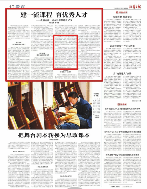——《山西日报》2024.1.22第10版《建一流课程 育优秀人才——我省高校一流本科课程建设记事》