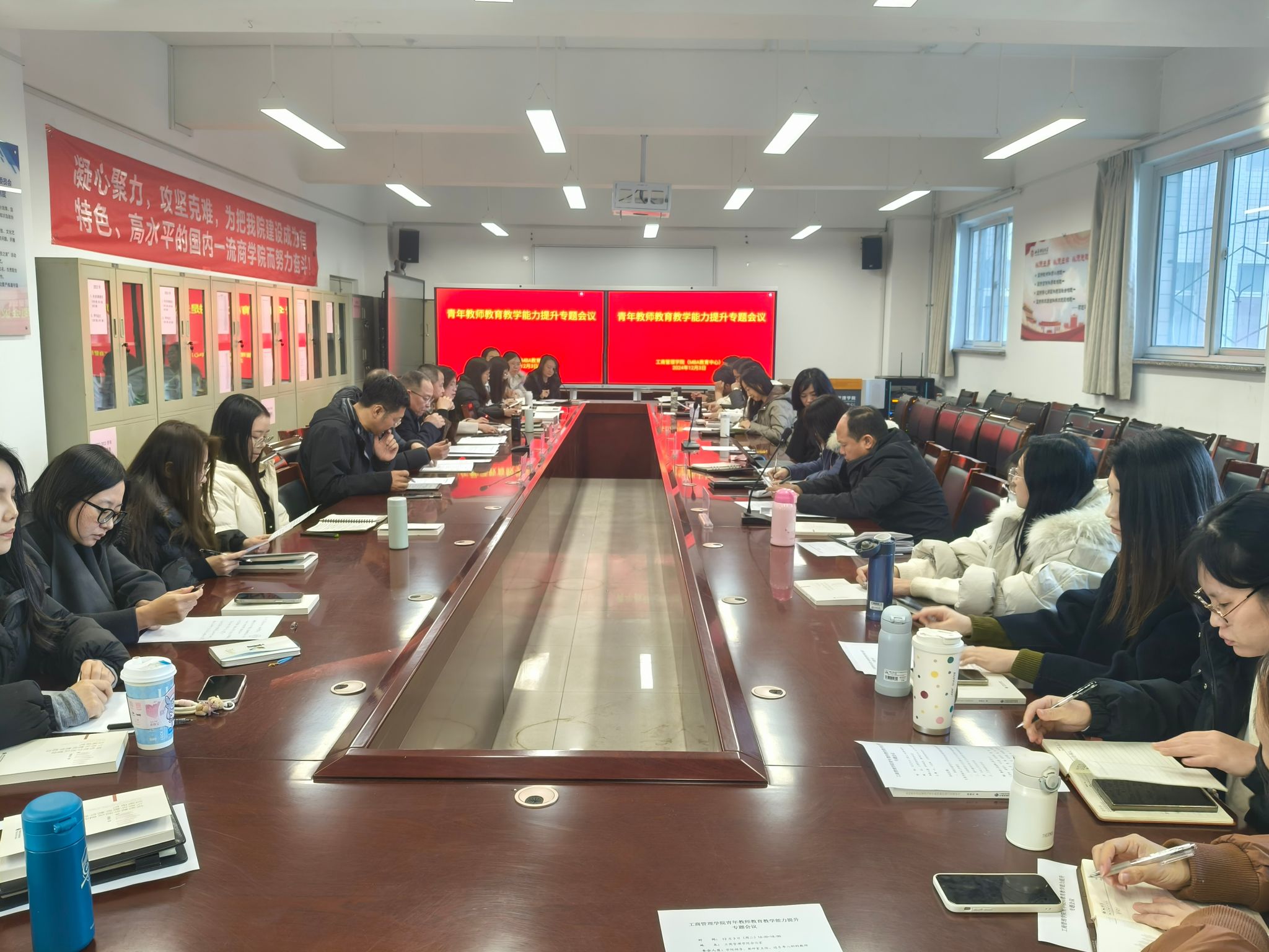 在会议室举办“青年教师教育教学能力提升专题会议”。学院全体领导、教研室主任以及近五年入职的青年教师近30人参加会议。会议由学院院长卫虎林教授主持。
