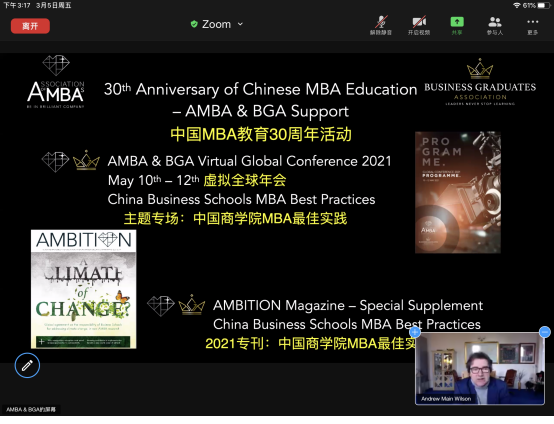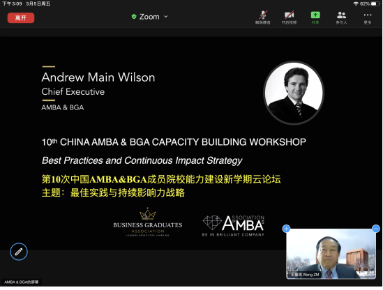 3月5日下午,英国国际认证协会举办第10次中国AMBA&BGA院校能力建设新学期云论坛,作为2021年第一次在线研讨与能力建设会议,主题是“最佳实践与持续影响力战略”。来自全球AMBA&BGA成员院校的管理学院院长、MBA中心主任和国内多所成员院校的有关人员参加了论坛。论坛由AMBA/BGA国际认证协会中国顾问、浙江大学文科资深教授、全球创业研究中心主任王重鸣教授主持。漫小肆