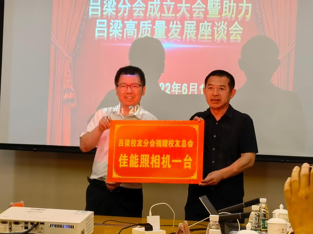 MBA校友会吕梁校友分会授牌、授旗以及分会向MBA校友会捐赠仪式。(漫小肆