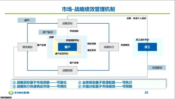 宫罗建先生首先指出,新奥集团经过三十多年的发展,已经成长为一个拥有4家上市公司、年营收超过1600亿、入围中国企业500强的能源产业集团。伴随集团的发展,其所采用的战略绩效管理理论也在逐步进化,从初期的目标管理、KPI、PDCA等绩效管理方法的引入,到“三一商业计划书”、平衡计分卡的编制应用,再到市场战略、客创一体化战略的中国化探索实践,形成了一套从战略制定到战略执行、从组织绩效到个人能力提升与激励的先进管理体系,护航了集团近20年的高速发展。