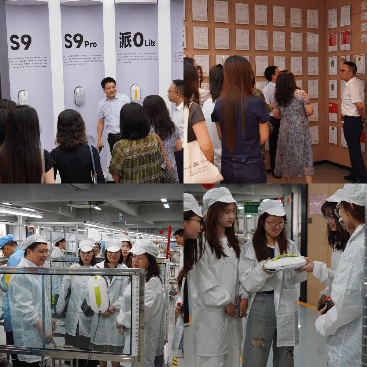 活动开始,在孙晓普的陪同下,师生们先后参观了企业展厅、智能化生产线及研发实验室。作为国家级专精特新“重点小巨人”企业,嘉世达专注于人工智能领域垂直立面机器人的研发与生产,其核心产品“洒拖”系列机器人凭借高效清洁技术和AI算法,远销海外市场。参观过程中,蒲勇详细讲解了机器人从设计、组装到质检的全流程,自动化设备的高精度运作和严谨的品质管理体系让同学们深刻体会到“山西智造”的技术实力。